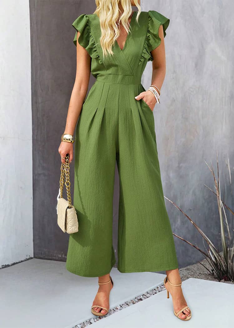 Avec ses manches légèrement volantées, cette combinaison t'assure un look bohème chic particulièrement ravissant. La coupe fluide et évasée du pantalon admet également un esprit boho que l'on adore chez Mlle Champêtre.