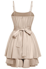 Entre coupe courte et dos nu, cette combishort admet une grande part de féminité... Pour ce qui est de l'esprit champêtre, il émane surtout de son style volanté et de son coloris champagne.