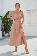 Chic mais aussi subtilement décontracté, cet ensemble pour mariage te garantira une expérience confortable. Avec sa jupe fluide et son haut plein de légèreté, il est sûr que tu prendras plaisir à l'enfiler.