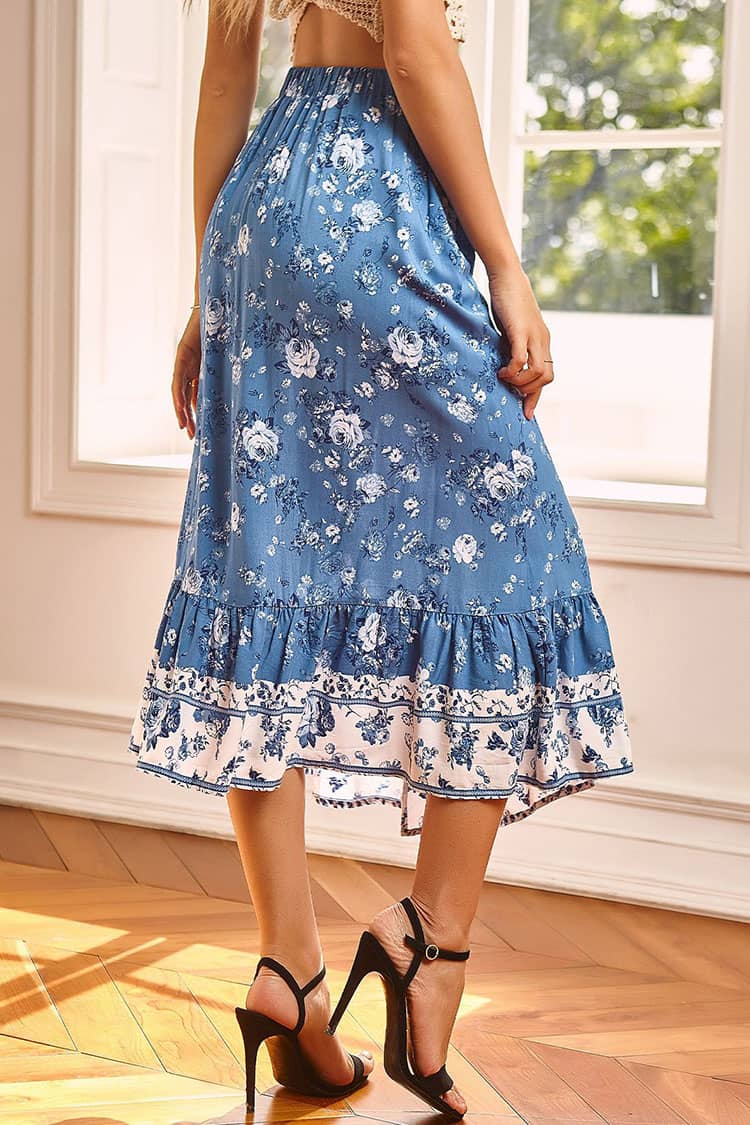 La jupe au coloris bleu pour une allure champêtre pleine de fraîcheur.