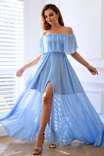 À mi-chemin entre féminité et élégance, cette robe bleue invité mariage champêtre s'inscrit parfaitement dans un esprit bucolique chic. Son coloris bleu pastel met en valeur le teint, le tout en ajoutant une touche de fraîcheur à la tenue.