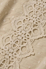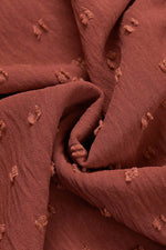 Sa coupe courte, ses manches ballon et ses détails brodés donnent à cette robe champêtre un air plus sophistiqué.
