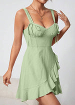 Soulignant le buste et la poitrine, son haut cintré s'impose comme parfaitement flatteur. À cela s'ajoute un ourlet volanté qui ponctue le tout en donnant une forme de légèreté et de fluidité à la robe.