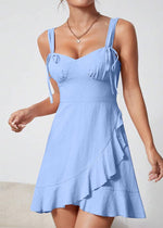 Des lacets aux bretelles s'imposent ensuite sur cette robe courte cintrée pour renforcer cet esprit pleinement bucolique. Pleine d'un véritable charme, on adorera cette robe en coton printemps comme été !