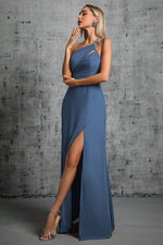 Déclinée en rose poudré et bleu ardoise, cette robe au tombé impeccable est parfaite pour les invitées de mariage, demoiselles d’honneur ou soirées élégantes.