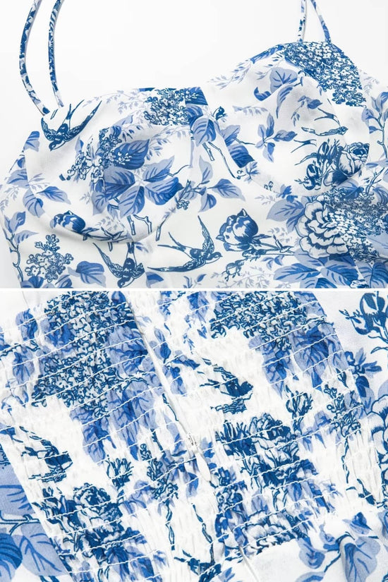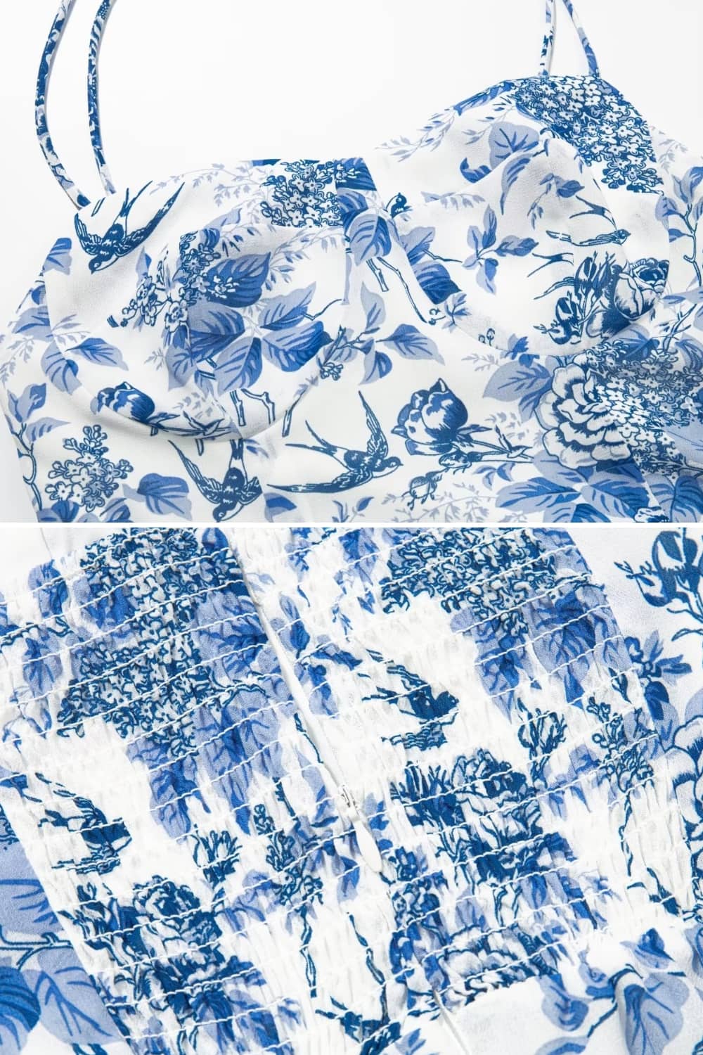 - Imprimé floral bleu et blanc