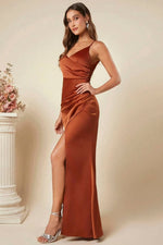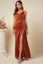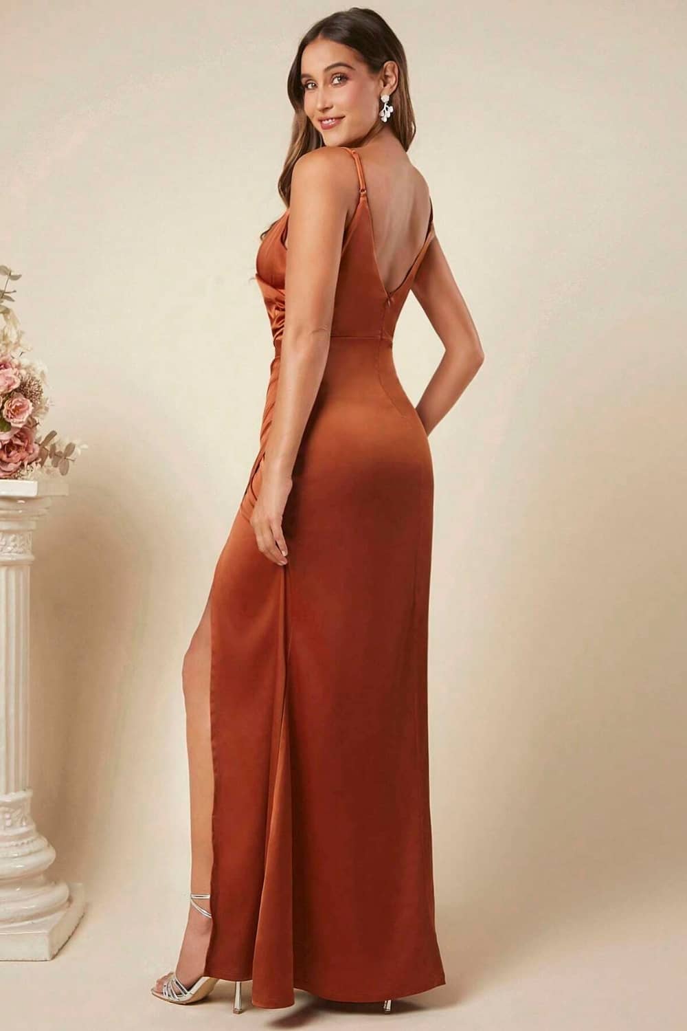 Une robe longue satinée terracotta pour les grandes occasions
