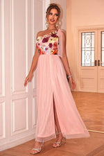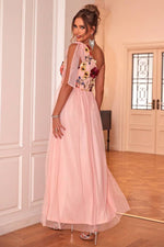 Cette touche florale emblématique du style champêtre est idéale lors d'évènements chics. Avec son rose pâle, cette robe de cérémonie en devient parfaitement fraîche et bucolique.