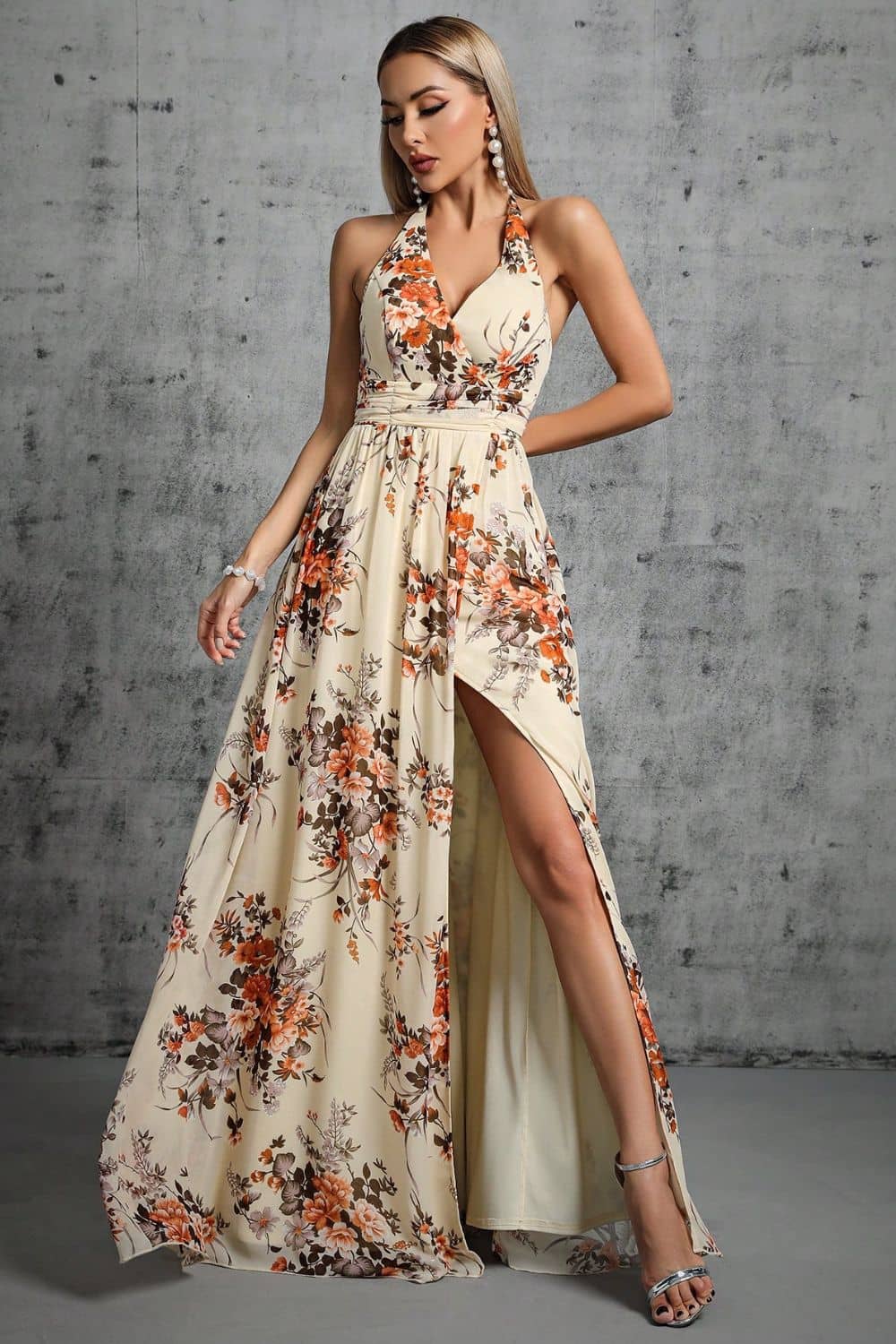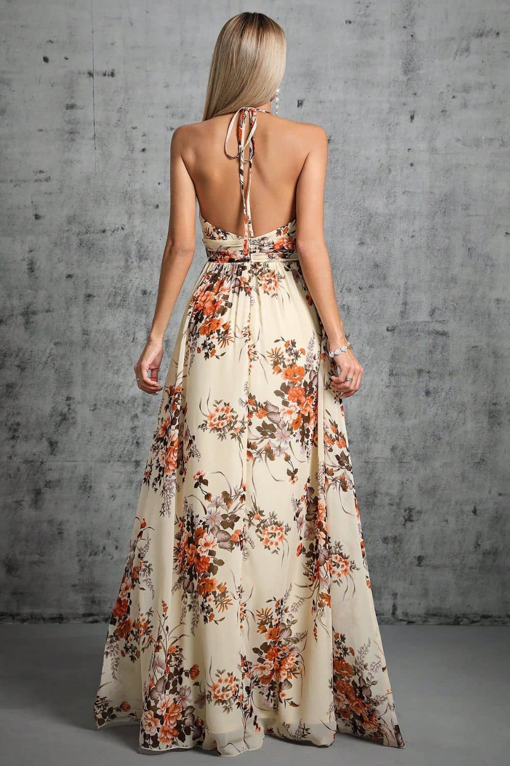 Fluide, légère et un brin audacieuse : cette robe dos nu à fleurs incarne le chic sans effort. Pensée pour celles qui veulent marquer les esprits tout en subtilité, elle séduit par sa coupe longue et fendue, son dos nu délicat et son imprimé à fleurs romantique à souhait. Une pièce forte qui épouse les silhouettes avec sa taille haute et son col en V légèrement plongeant.
