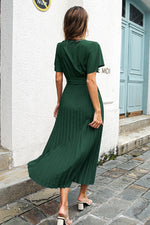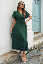 Par ailleurs, de belles manches courtes évasées s'imposent sur cette robe champêtre. Le rendu en devient d'autant plus raffiné et glamour. Finalement, sa coupe longue et fluide dégage liberté et féminité.
