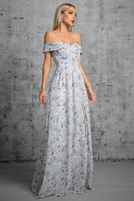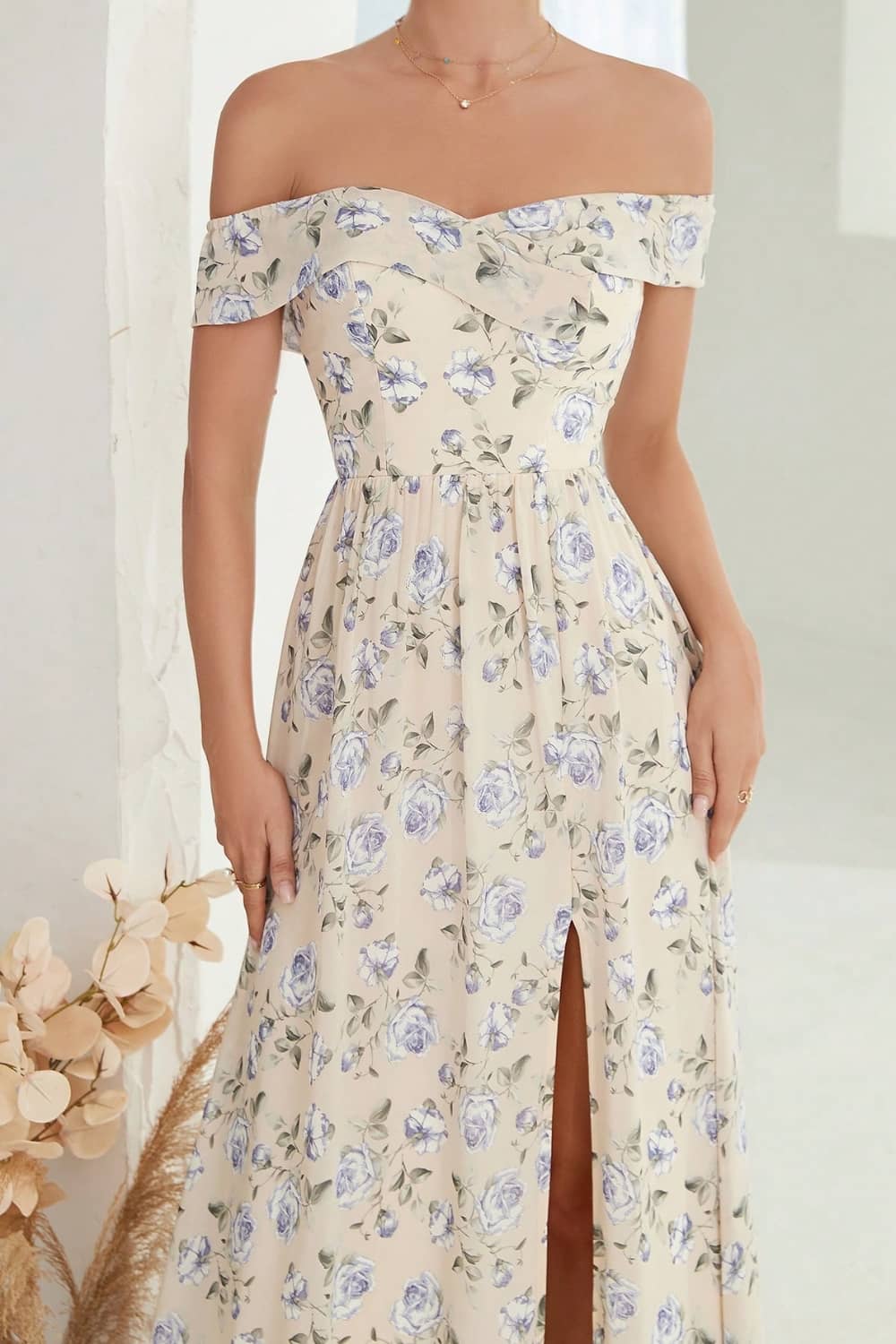 Pensée pour les grandes occasions, cette robe épaules dénudées capture l’esprit Mlle Champêtre dans toute sa délicatesse. Son encolure bardot révèle avec subtilité les épaules, tandis que sa coupe longue et fluide, fendue sur le côté, offre une silhouette aérienne et délicatement sensuelle.