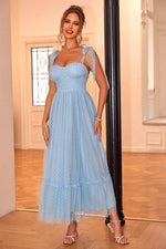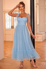 Par ailleurs, son style bustier et sa taille haute soulignent le haut du corps, structurant ainsi la silhouette en toute facilité. Enfin, ses petits détails à pois habillent la robe en communiquant une humeur incontestablement champêtre.