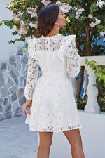 Tandis que sa coupe courte te dessine une silhouette chic et féminine, son col rond lui aussi orné de dentelle apporte un air vintage propre aux années 50. Habillant cette robe blanche avec élégance, on adore cette petite touche romantique.